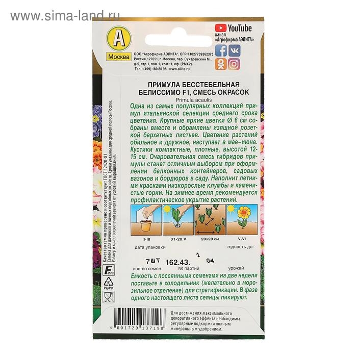 Семена цветов Примула "Раннецветущая", смесь окрасок, F1, 7 шт