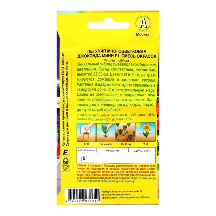 Семена цветов Петуния "Джоконда мини", F1, смесь окрасок, 7 шт