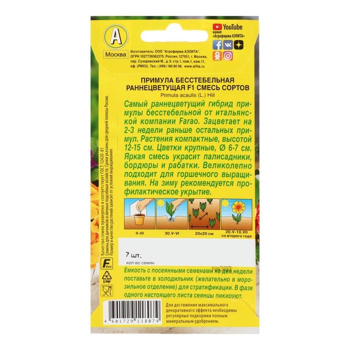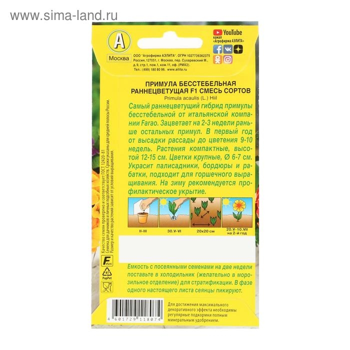 Семена цветов Примула "Раннецветущая", смесь окрасок, F1, 7 шт