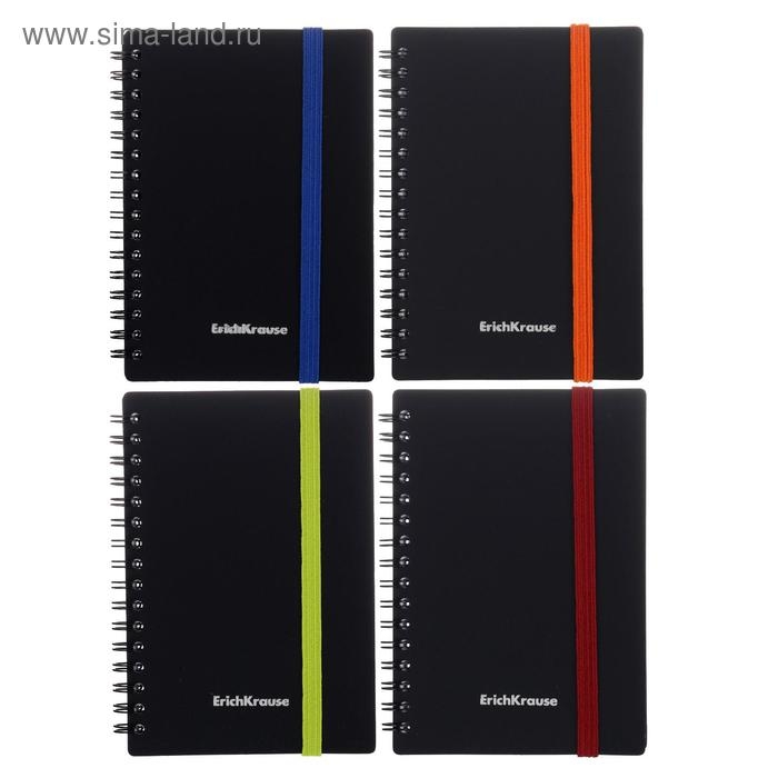 Тетрадь А6 на спирали, 80 листов в клетку, ErichKrause Accent, пластиковая обложка, на резинке, блок офсет 100% белизна, МИКС