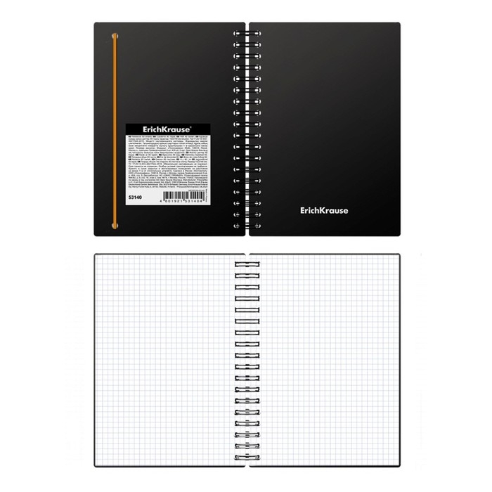 Тетрадь на спирали А6, 60 листов в клетку, ErichKrause Classic, пластиковая обложка, блок офсет 100% белизна, МИКС (1 вид в спайке)