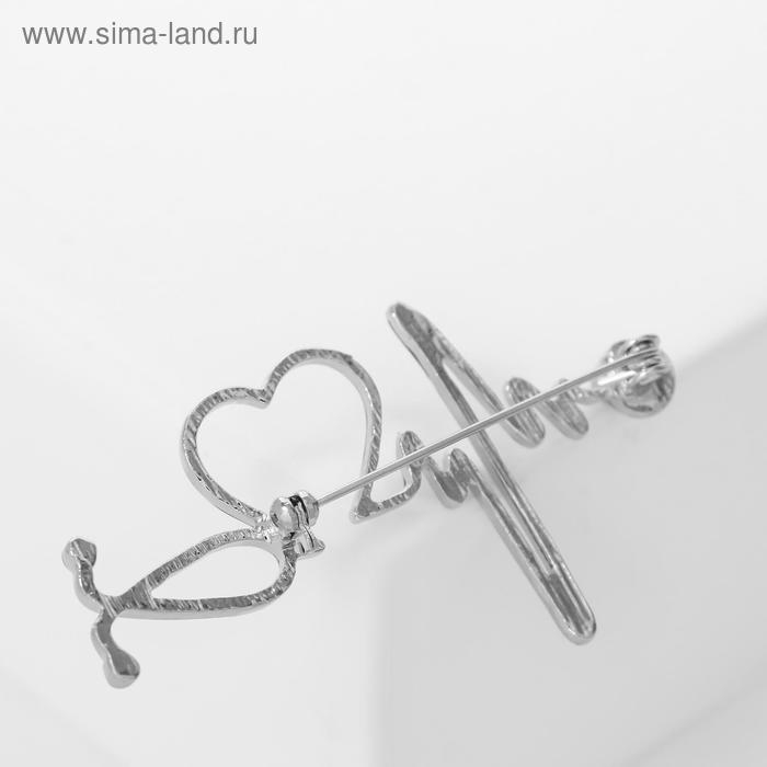 Брошь« Стетоскоп» кардиограмма, цвет синий в серебре