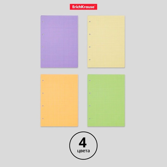 Сменный блок для тетради А5, на кольцах, 120 листов в клетку, ErichKrause, тонированный: 4 цвета по 30 листов