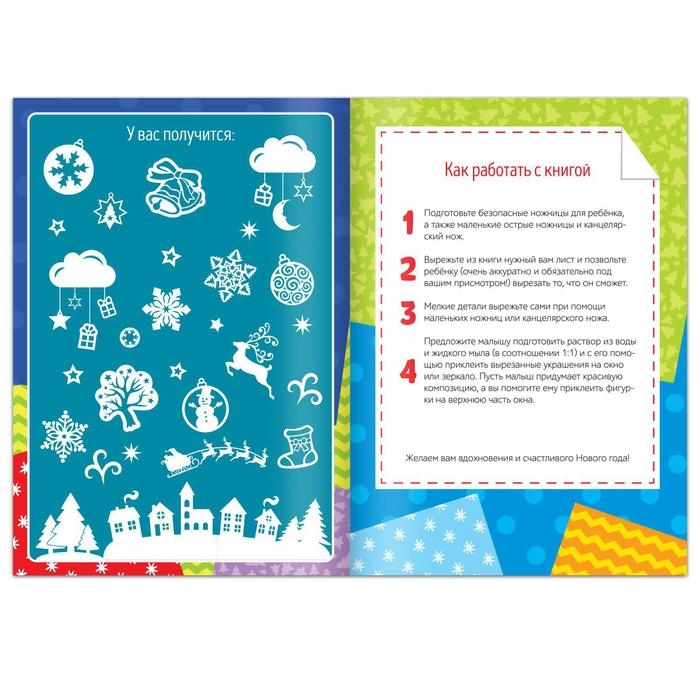 Зимой мороз раскрашивает окна снаружи, а эта книга позволит вам декорировать их изнутри. Вырезайте вместе с ребёнком бумажные фигуры и готовьтесь к Новому году.