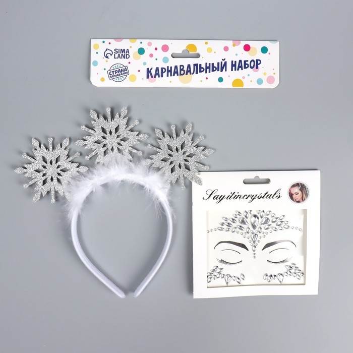Новогодний карнавальный набор «Снежная принцесса» (ободок + стразы), виды МИКС, на новый год