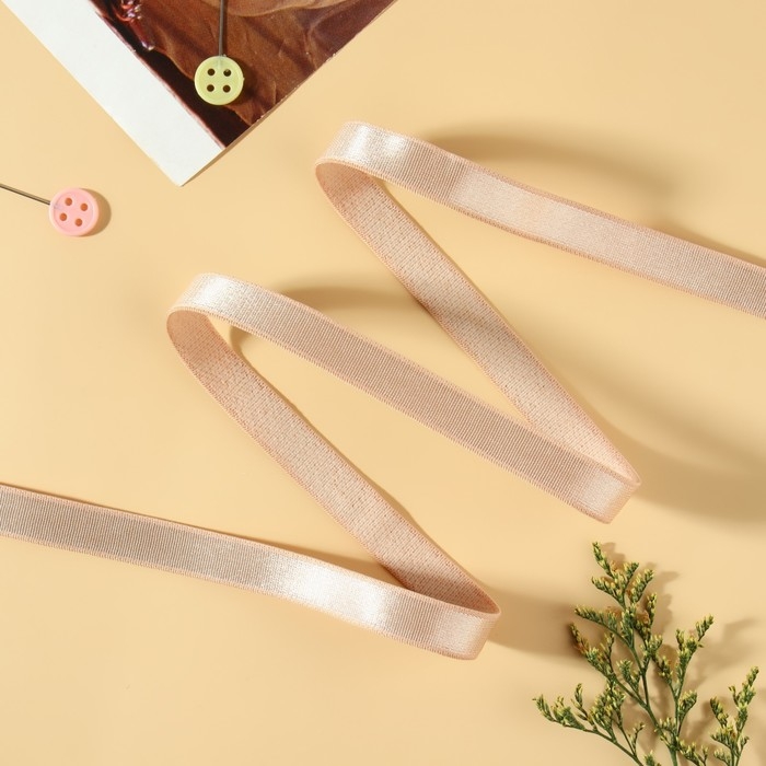 Резинка для бретелей, блестящая, 10 мм, 10 ± 0,5 м, цвет бежевый