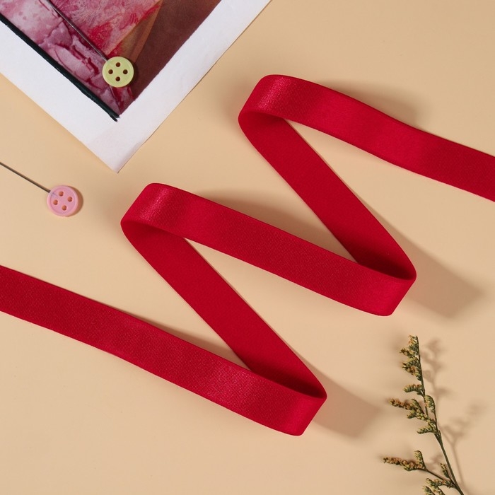 Резинка для бретелей, блестящая, 15 мм, 10 ± 0,5 м, цвет красный