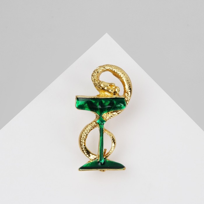 Брошь «Змея в геральдике» извивающаяся, цвет зелёный в золоте