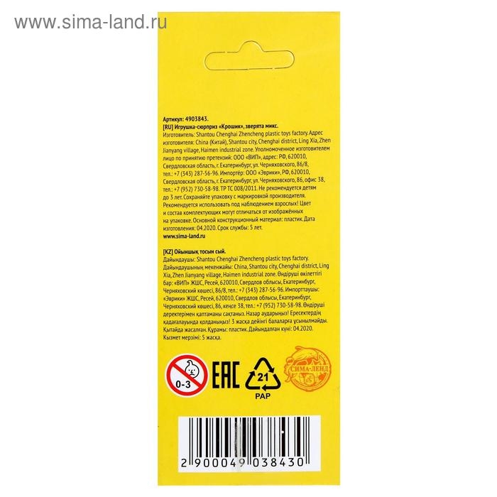 Игрушка-сюрприз «Крошик», зверята, МИКС