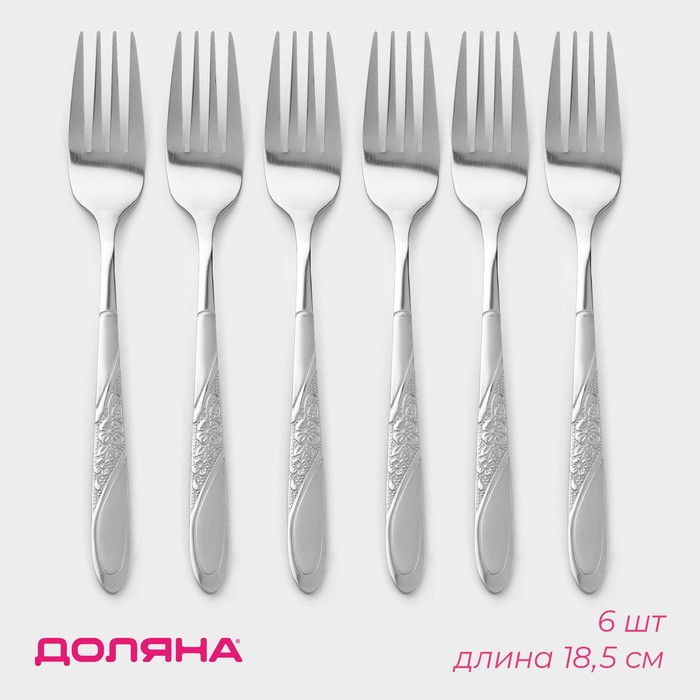 Набор вилок столовых из нержавеющей стали Доляна «Антураж», h=18,5 см, 6 шт, цвет серебряный