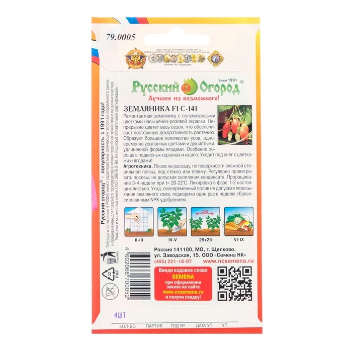 Семена Земляника "Челябинский метеорит" , 10 шт