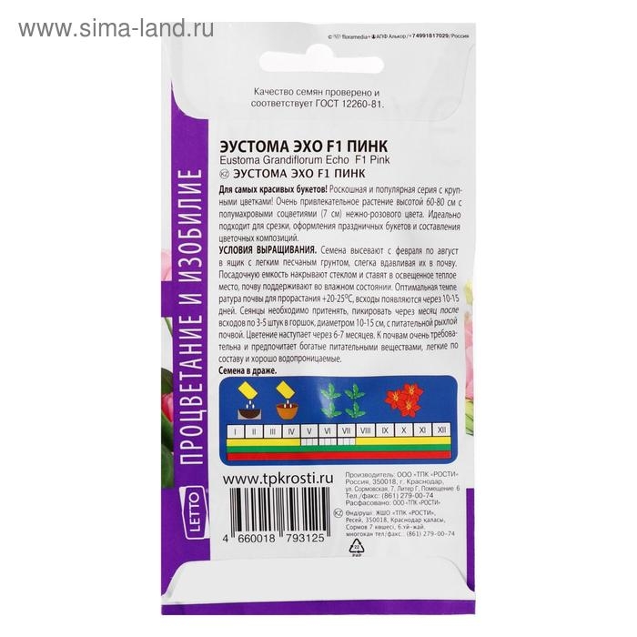 Семена цветов Эустома "Эхо Пинк", F1, О, драже, 5 шт