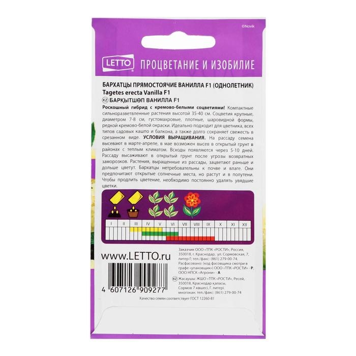 Семена цветов Бархатцы "Ванилла", F1, крупные, кремовые, О, 5 шт