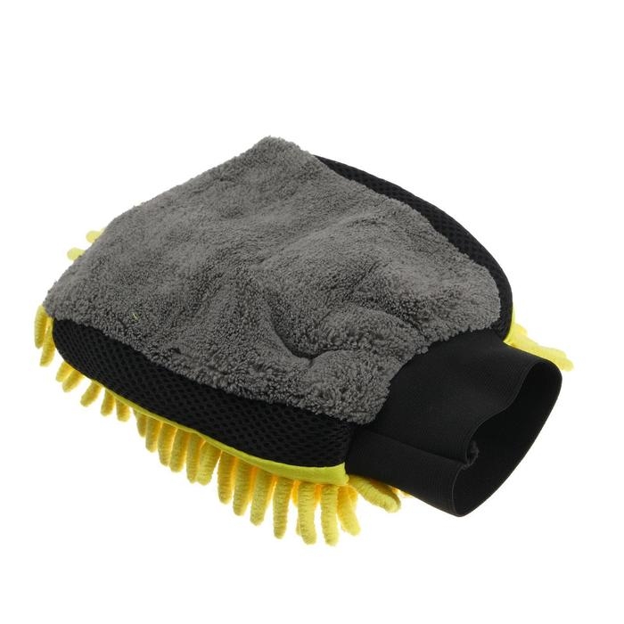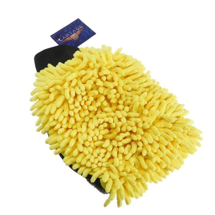 Варежка для мытья авто CARTAGE, 25×19 см, двухсторонняя, желто-серая