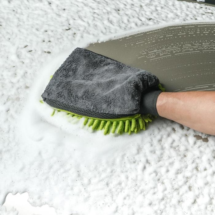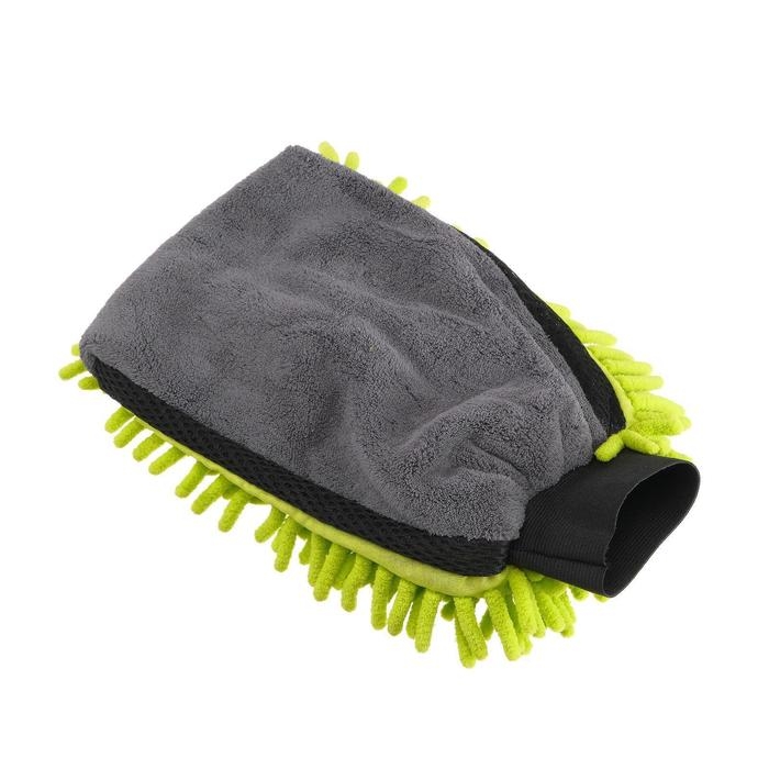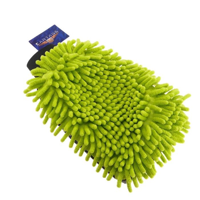 Варежка для мытья авто CARTAGE, 25×19 см, двухсторонняя, зелено-серая