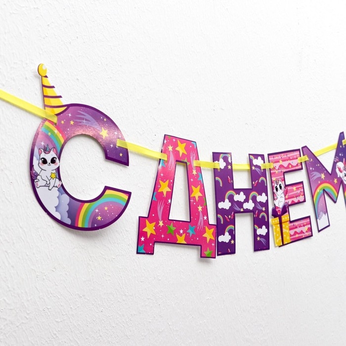 Гирлянда на ленте «С Днем Рождения!», радужный котик, длина 250 см