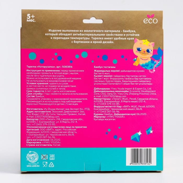 Тарелка детская из бамбука «Малышки», 2 секции, МИКС