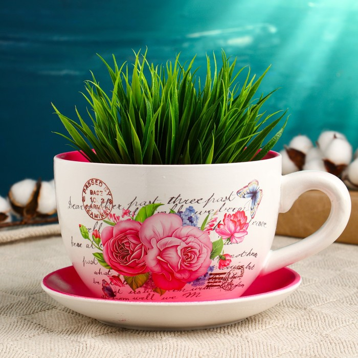 Горшок в форме чашки "Эмма" розы, 19х15х10см