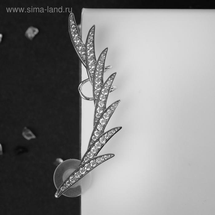 Серьга «Кафф» перо стразы, цвет белый в серебре