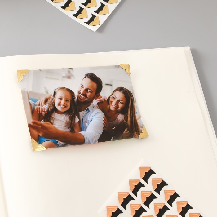 Набор уголков с кармашком для фотографий 24 уголка "Стиль" золото 12,5х9 см МИКС