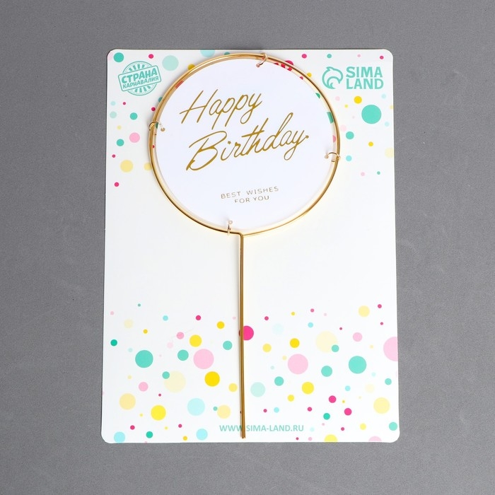 Топпер "Happy Birthday", круг, золото, Дарим Красиво