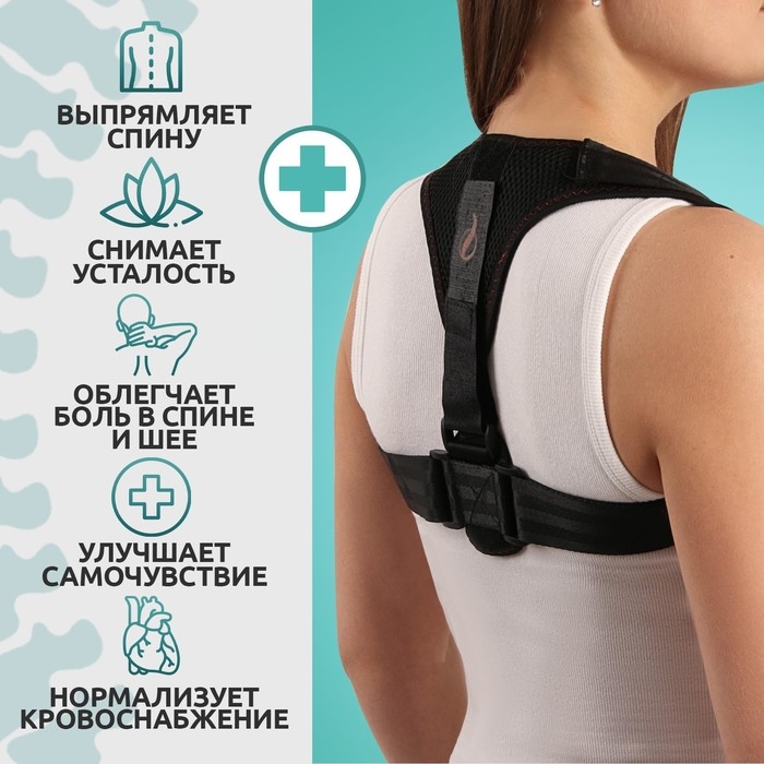 Массажёр - фиксатор для осанки, на липучках, размер универсальный, цвет чёрный