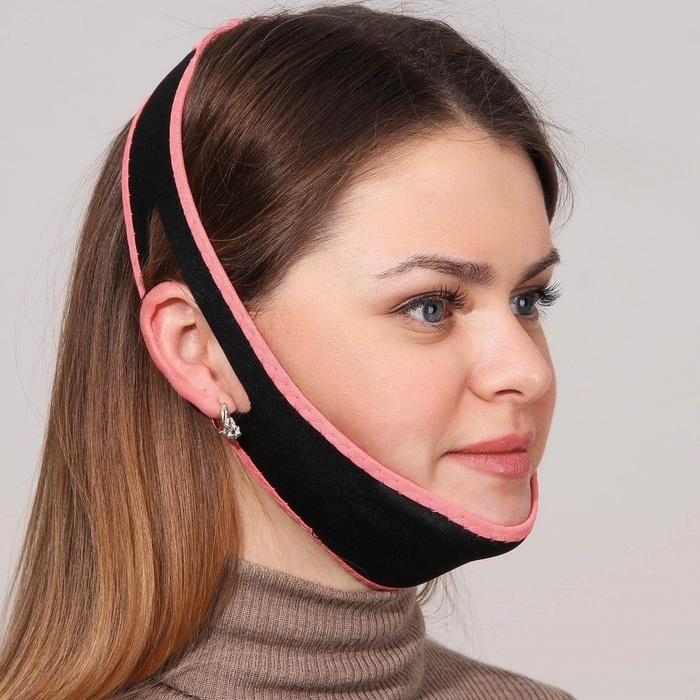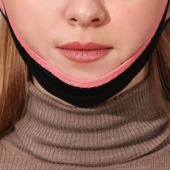 Маска текстильная для коррекции овала лица, на липучке, цвет чёрный/розовый