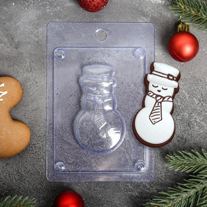 Форма для шоколада и конфет пластиковая «Снеговик», размер изделия 8×4,5 см, цвет прозрачный