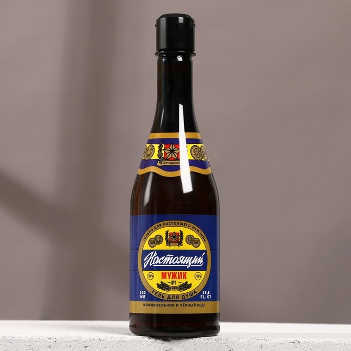 Гель для душа во флаконе пиво «Настоящий», 450 мл, аромат можжевельника и чёрного кедра, Новый Год