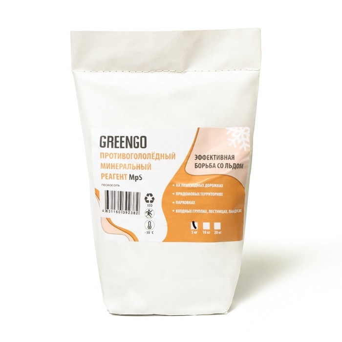 Реагент противогололёдный (пескосоль), 5 кг, работает при —30 °C, в пакете, Greengo