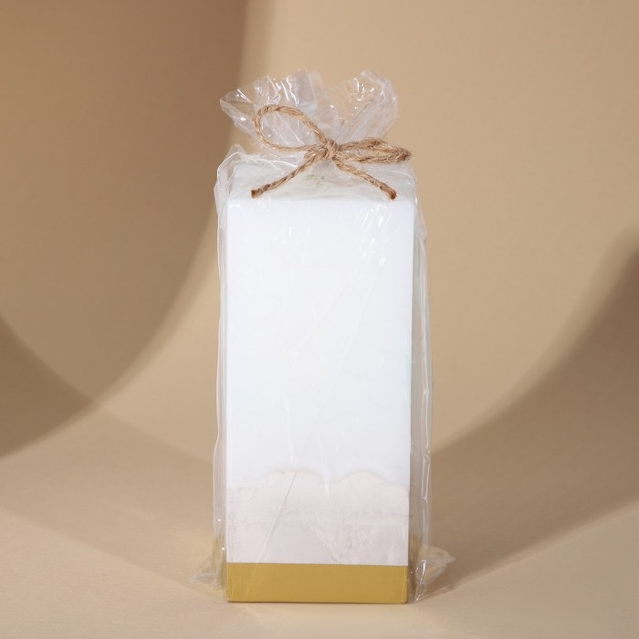 Прямоугольная форма свечи, белый цвет и золотое основание создают элегантный и стильный образ. Бетонная текстура на нижней части свечи добавляет ей природную красоту и делает ее по-настоящему уникальной.