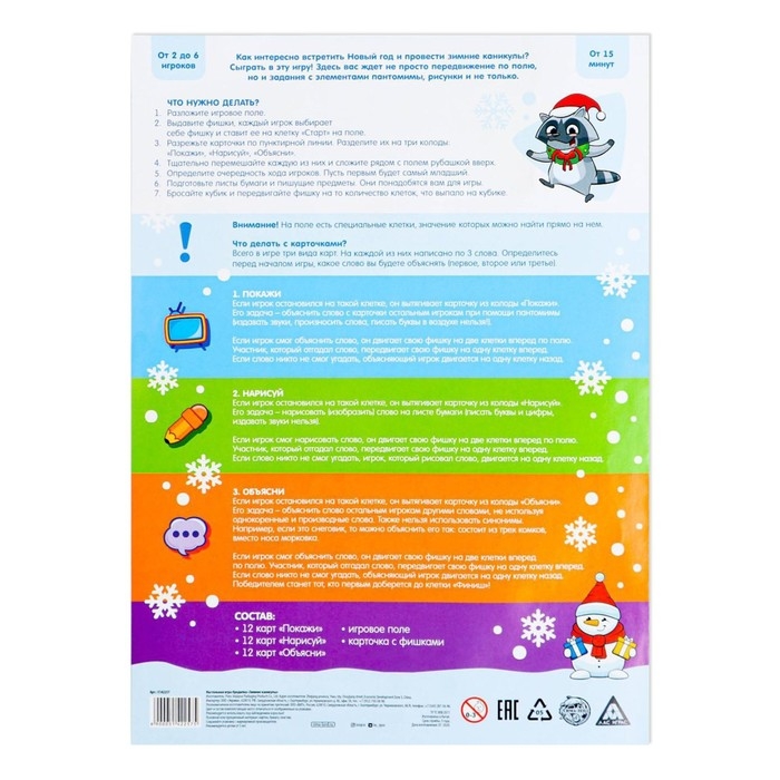 Как весело и интересно встретить Новый год и провести зимние каникулы? Сыграть в эту игру! Здесь вас ждёт передвижение по полю и задания с элементами пантомимы, рисунки и многое другое.