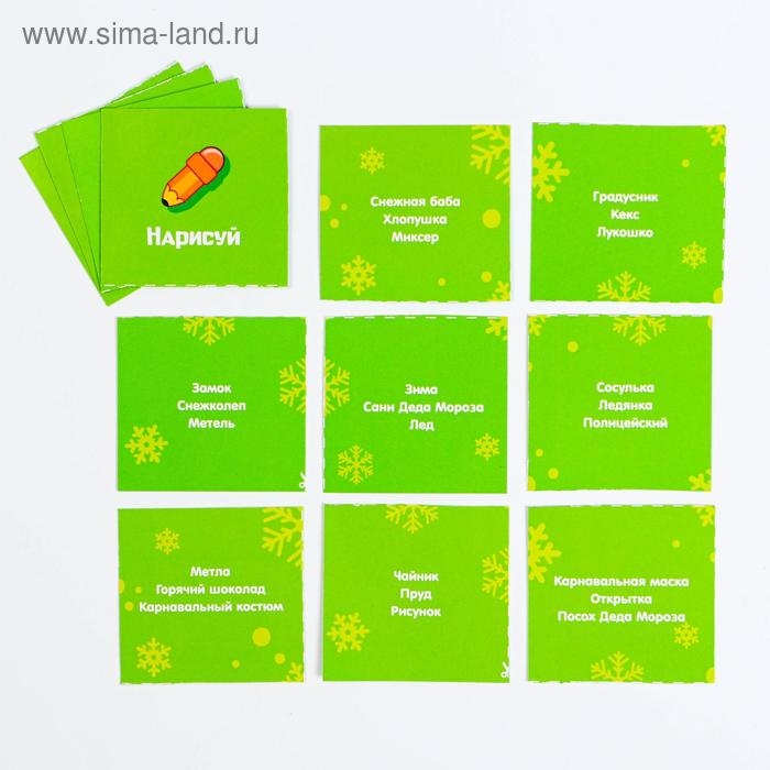 Всего в игре есть 3 вида карт. На каждой карте написано по 3 слова. Определитесь перед началом игры, слова под каким номером вы будете объяснять.