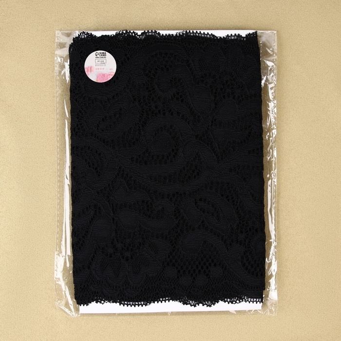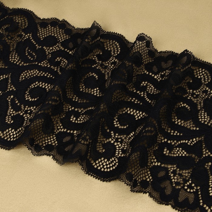 Кружевная эластичная ткань «Узоры», 175 мм × 2,7 ± 0,5 м, цвет чёрный