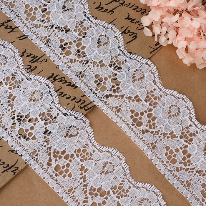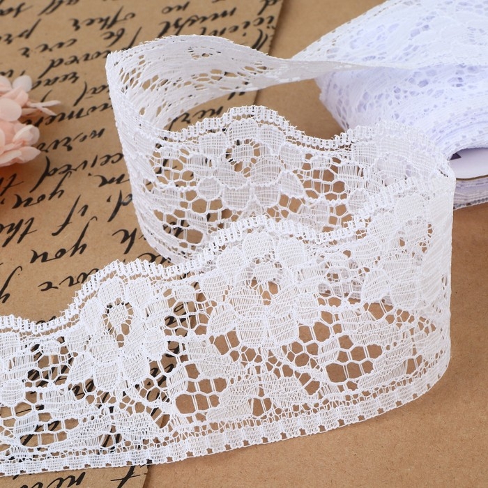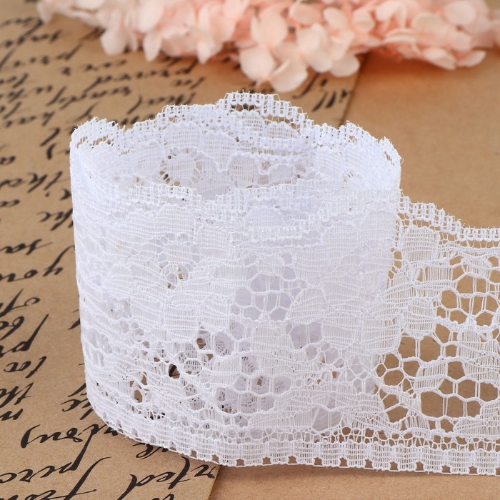 Кружево капроновое, 60 мм × 10 ± 1 м, цвет белый