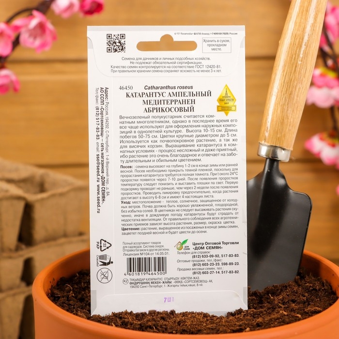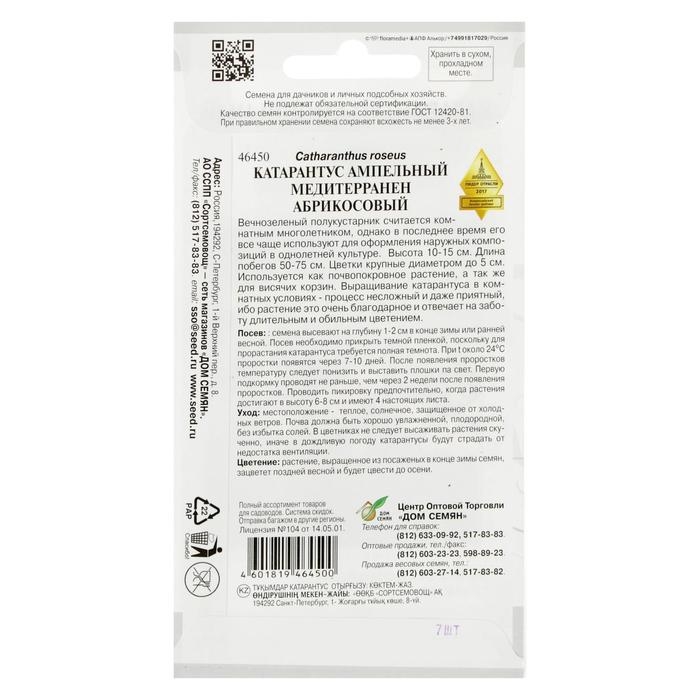 Семена цветов Катарантус амп. Медитерранен, абрикосовый, 7 шт