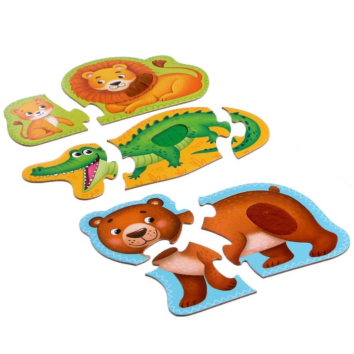 Макси-пазлы с тактильными вставками «Любимый зоопарк», 3 пазла, 8 деталей