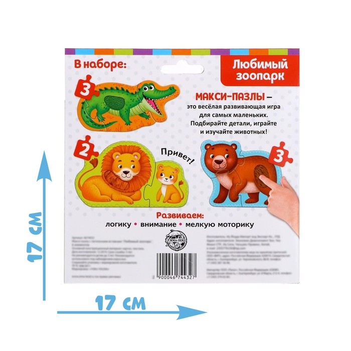 Макси-пазлы с тактильными вставками «Зоопарк» — это 8 деталей, из которых ребёнок соберёт 3 разных пазла и познакомится с животными зоопарка. Макси пазлы помогут развить усидчивость, координацию и мелкую моторику рук, а также научат находить связь между частью и целым.