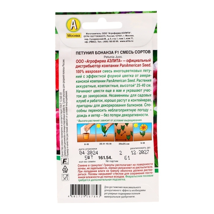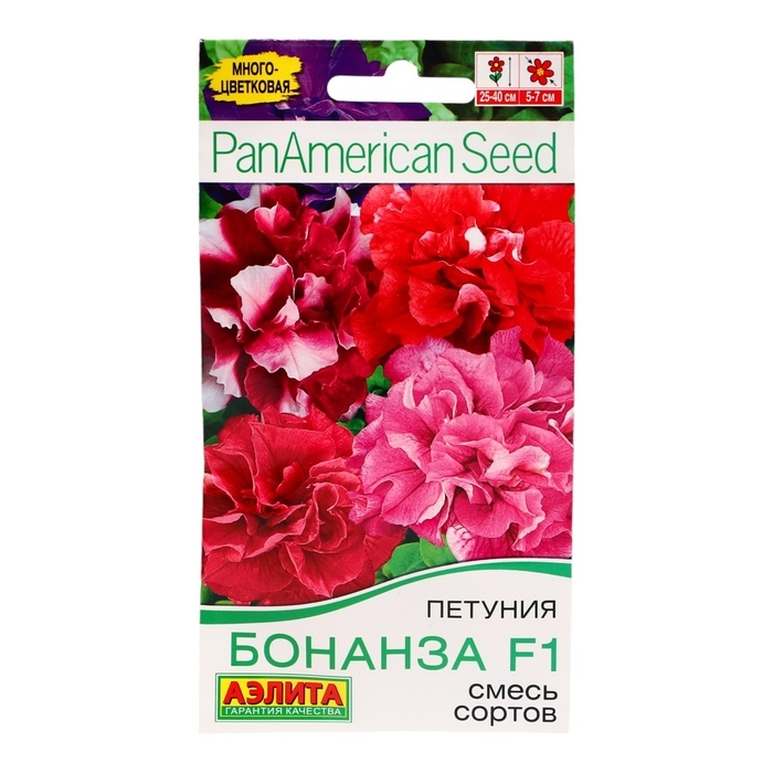 Семена цветов Петуния Бонанза F1, обильноцветущая махровая, смесь окрасок, 5 шт