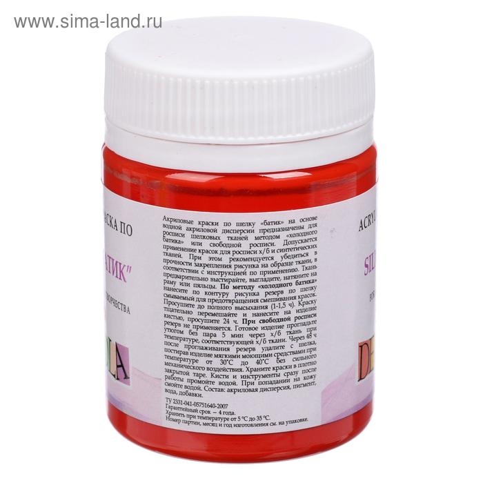 Краска по шелку "Батик", банка 50 мл, ЗХК Decola, Гераниевая 4428373 (акриловая на водной основе)