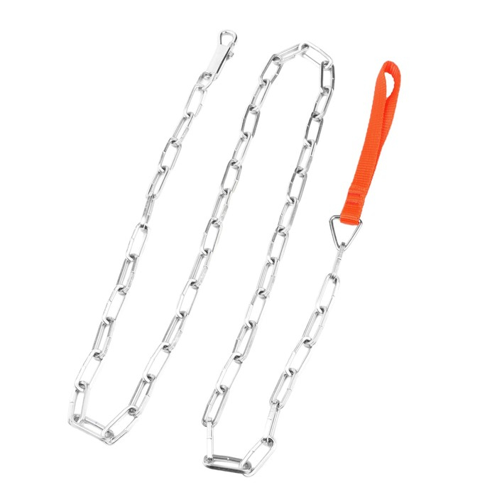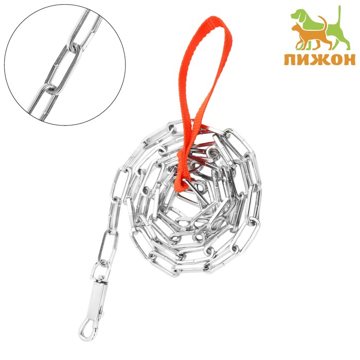 Поводок должен быть прочным и надежным. Металлический поводок полностью соответствует этим требованиям, плюс ко всему это красивый и износостойкий аксессуар. Поводок состоит из хромированной цепочки и мягкой нейлоновой ручки. Ручка прошита армированной нитью, удобно располагается в ладони и не натирает при натяжении. Поводок оснащен стальным карабином.