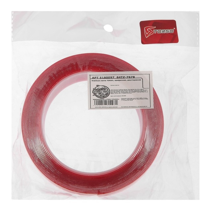 Автомобильный скотч TORSO предназначен для крепления декоративных элементов к кузову автомобиля. Может использоваться для крепления молдингов, спойлеров, накладок на дверь, обвесов, дефлекторов, эмблем, букв и т.п. Монтажная клейкая лента с мягкой акриловой основой и акриловым клеевым слоем, который обеспечивает высокую начальную адгезию. Лента имеет защитный слой из силиконового полиэтилена.