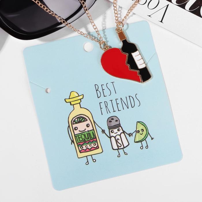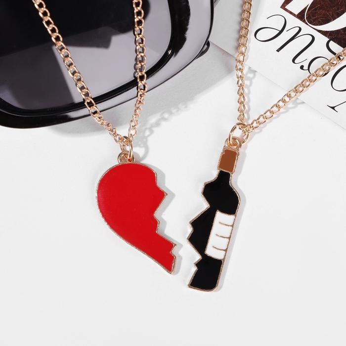 Кулоны «Неразлучники» сердце и вино, цветные в золоте, 45 см