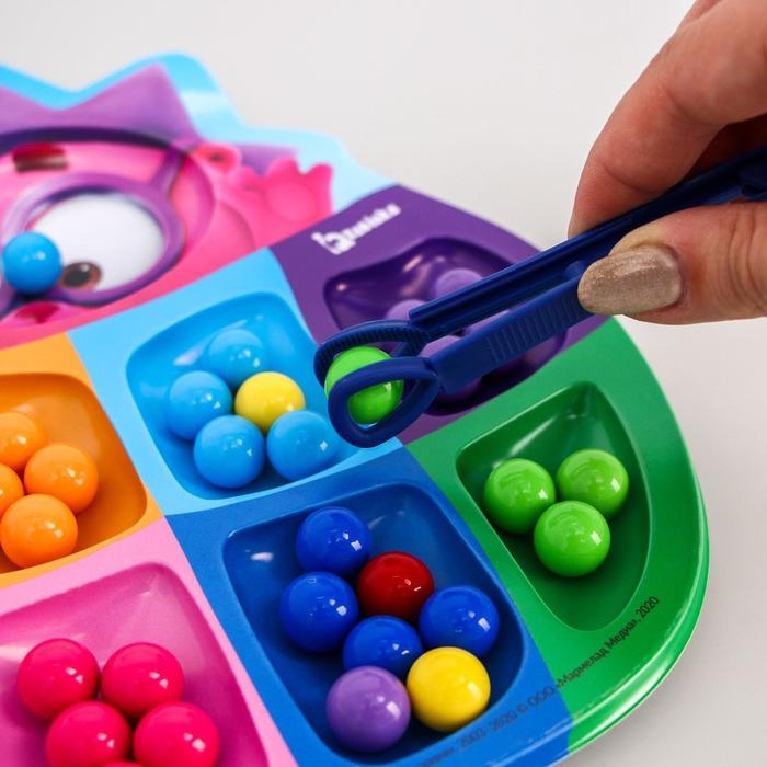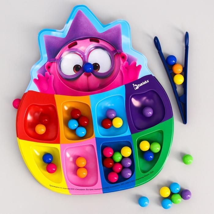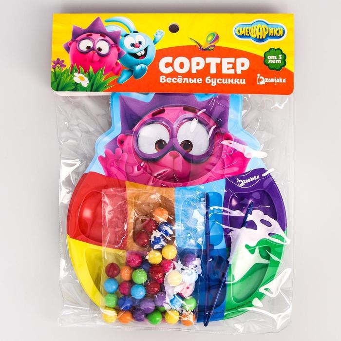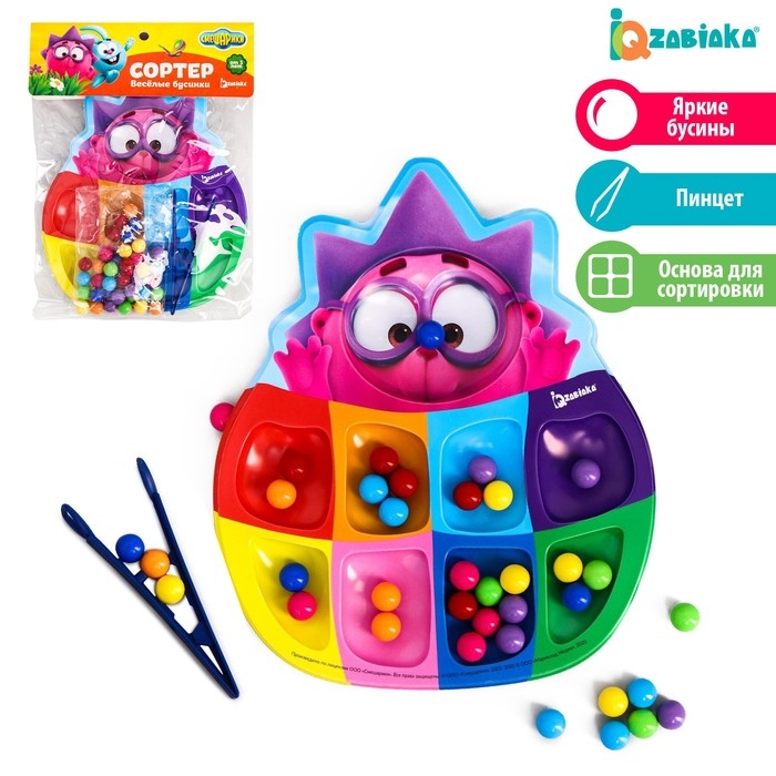 Сортер «Смешарики: Весёлые бусинки», 8 цветов, с пинцетом, по методике Монтессори