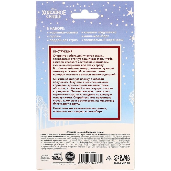 Алмазная мозаика, 16х10.5 см, Холодное сердце