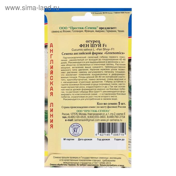 Семена Огурец "Фен Шуй" F1, 5 шт