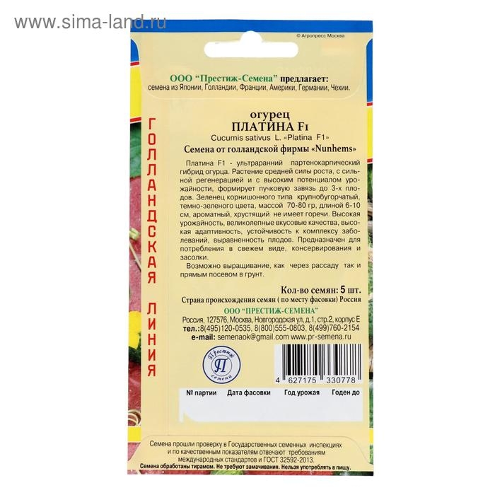 Огурец Платина – новый партенокарпический гибрид раннего огурца для культивации в условиях открытого грунта в растил. Растение отличается очень высокой степенью урожайности, отлично восстанавливается после повреждения и является самым востребованным огурцом для механической сборки.