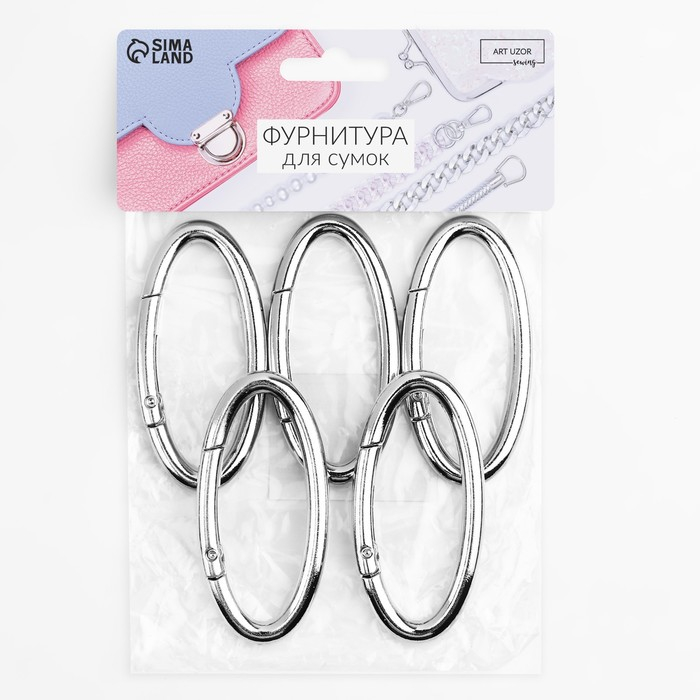 Овал-карабин, 6,5 × 3,1 см / 54 × 6 мм, 5 шт, цвет серебряный