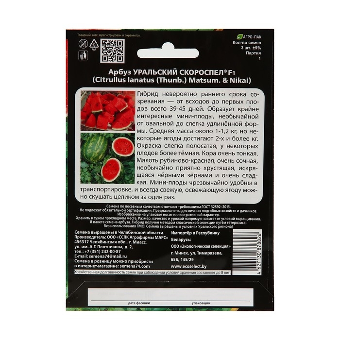 Семена Арбуз "Уральский Скороспел", F1, 3 шт