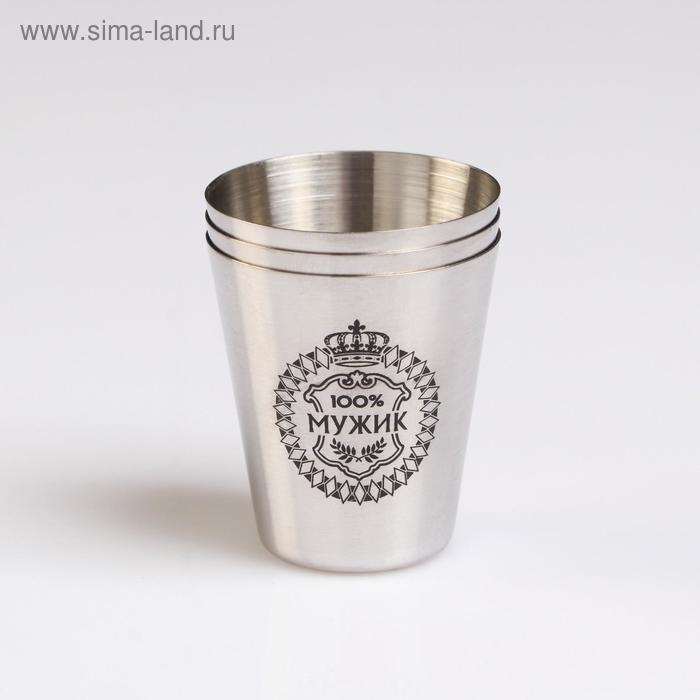 Стопки, 23 Февраля "100% Мужик", набор 3 шт по 30 мл, 4 х 3.5 см